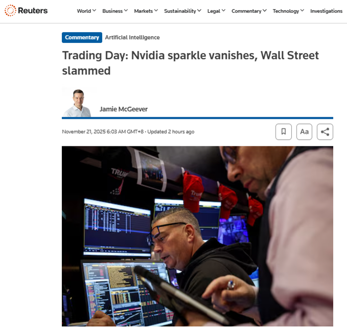 美股三大股指全线收跌,对AI出现泡沫的警告越来越多