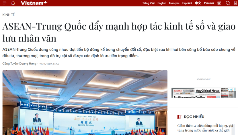 【环球网财经综合报道】广东省发文加快建设国家数字经济创新发展试验区,力争到2027年,数字经济核心产业增加 值占GDP比重超过16%,数据产业规模年均复合增长率超15%,人工智能核心产业规模超过4400亿元。 越南通讯社近日发文称,泰国外交部美洲与南太平洋事务司司长切塔潘·马克萨姆潘,在近日举行的东盟-中国周活动 期间表示,数字化转型不仅限于贸易和投资,还扩展到跨境电子商务、数字支付系统、人工智能(AI)、智慧医疗、 在线教育、多媒体传播、数字农业和农业生产中的高科技等领域。 他评价这些是助力中小型企业增长、提高生产率和建设区域共同数字生态体系的重大机遇。 同时他也强调,数字经济的快速发展提出了对人工智能治理、网络安全、防范网络犯罪和在线风险控制的迫切要求, 并建议东盟和中国紧密合作,共同建立法律框架和统一标准。 ...