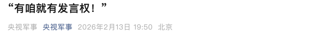 新闻核心观点 - 新闻核心为展示火箭军部队的战备状态与强大实力 通过新春慰问演出和歌曲等形式 传递其作为国家战略威慑力量的核心价值 即“有咱就有发言权” [1] 媒体宣传与品牌形象 - 中央广播电视总台推出《新春走基层·军营过大年》慰问火箭军部队专场演出 旨在展示部队风貌 [1] - 演出通过歌曲《有咱就有发言权》等艺术形式 传递火箭军“倚天剑”与“杀手锏”的战略定位 以及“威震寰宇的硬核实力” [1] - 宣传内容突出火箭军“手握战略重器 铸就和平盾牌”和“撑起民族脊梁”的形象 旨在提升公众认知与士气 [1] 部队状态与使命 - 火箭军官兵在新春佳节期间仍坚守战位 保持“枕戈待旦”的战备状态 以守护家国平安 [1] - 部队被描述为国家的战略基石 其存在和战备能力被强调为维护国家主权与安全发言权的关键 [1]