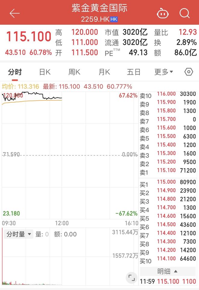港股年内第二大IPO来袭!紫金黄金国际首秀涨超60%
