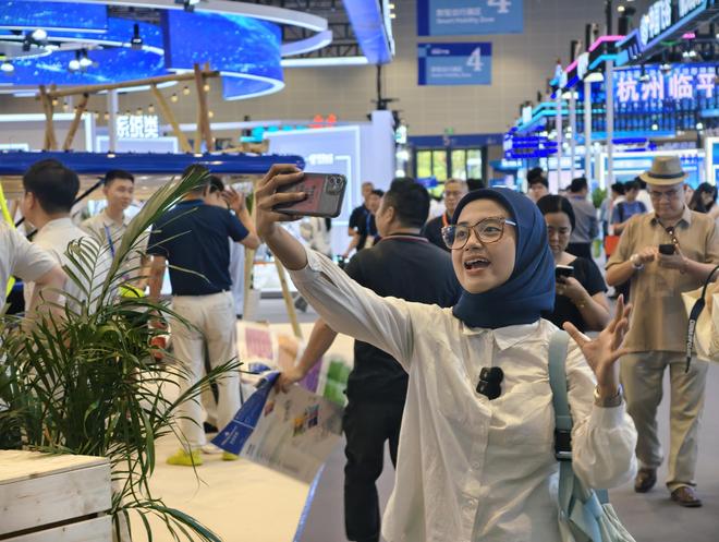 新华社记者刘梓漪、刘铭翔 宇树科技的机器人伴随动感音乐跳街舞,云深处的机器狗原地后空翻稳稳落地,浙江人形机器人创新中 心的机器人化身指挥家……在刚刚闭幕的第四届全球数字贸易博览会上,印度尼西亚拉贾瓦里电视台的 新闻记者奥利维娅·费拉里边用手机记录边赞叹:"中国的人工智能和机器人太多样、太不可思议了!" 9月23日至29日,来自马来西亚、印度尼西亚、老挝、越南、缅甸等东盟国家的智库学者、媒体记者参 访团,走进浙江杭州、金华、湖州等城市,沉浸式感受科技助力发展的生动实践。 "这款吹风机多少钱?""拿货价格是48元人民币。"在义乌国际商贸城,奥利维娅借助AI翻译设备,用印 尼语与中国老板李军无碍沟通,顺利完成购物。她说:"AI翻译机很有意思,不同国家的人都能用母语 顺利购物。" 能拍照录视频的AI眼镜、带实时翻译功能的AI耳机、可实时答疑解惑的AI手表……义乌国际商贸城内 还有很多科技产品。李军说,AI技术已深度融入日常销售,不仅可用于与外国顾客的交流,还可提供 有效的销售策略。 9月25日,在第四届全球数字贸易博览会上,印度尼西亚拉贾瓦里电视台的新闻记者奥利维娅·费拉里为 电视台录制视频。新华社记者 刘梓漪 摄 ...