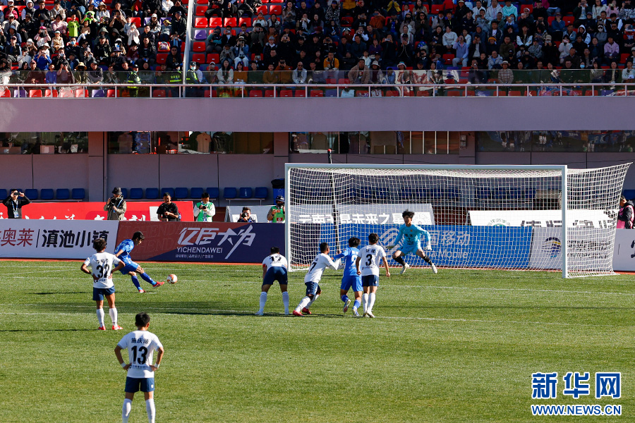 洪皓主罚点球命中(1月24日摄)。新华网发(杨桢宇 摄) 1月24日,2025/2026富滇银行云南省城市足球联赛(简称"滇超联赛")第五轮比赛战火重燃,昆明队坐镇主场迎战临沧队, 在1.3万余名观众的见证下以6:0取得胜利,刷新滇超联赛开赛以来最大分差。 昆明主场成"蓝色海洋"(1月24日摄)。新华网发(杨桢宇 摄) 本场赛后,昆明队以3胜1负积8分,临沧队则0胜4负依旧未能取得积分。临沧队主教练姚亮表示,对大比分的结果意想不 到,球队球员分布在临沧市临翔区、沧源县和昆明市三地,合练机会较少,"确实比较辛苦。" 昆明队主教练方亚林表示,开赛以来两次主场均大比分取胜,与主场球迷的助威密不可分。"亲朋好友都在看,球员肯定会 更兴奋一些。"他表示,客场比赛不确定因素比较多,球队将对此开展多重准备。(完) 比赛现场(1月24日摄)。新华网发(杨桢宇 摄) 手握两球优势进入下半场,昆明队的攻势更加猛烈,分别在第53分钟、第62分钟、第68分钟和补时阶段攻入4球,将比分定 格为6:0,刷新了滇超联赛开赛以来的最大分差。 临沧队开出任意球(1月24日摄)。新华网发(杨桢宇 摄) 上半场开始,昆明队在主场优势的加持下占据场 ...