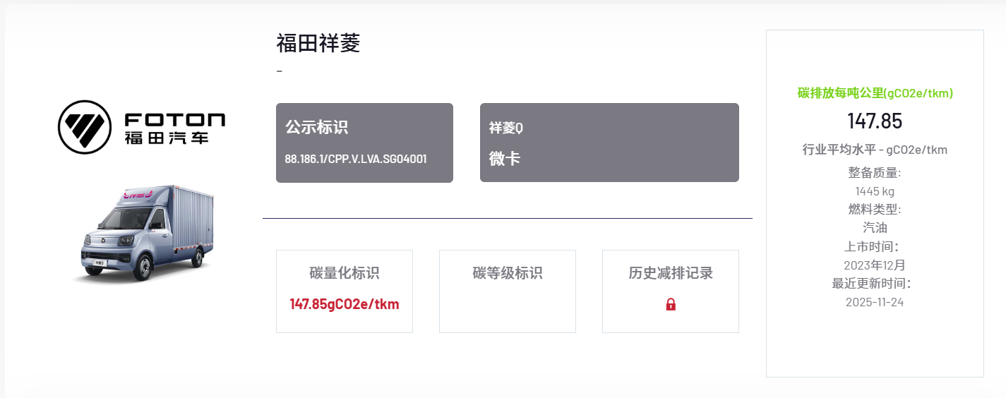 再增两款车型 福田汽车微卡产品获碳足迹量化标识
