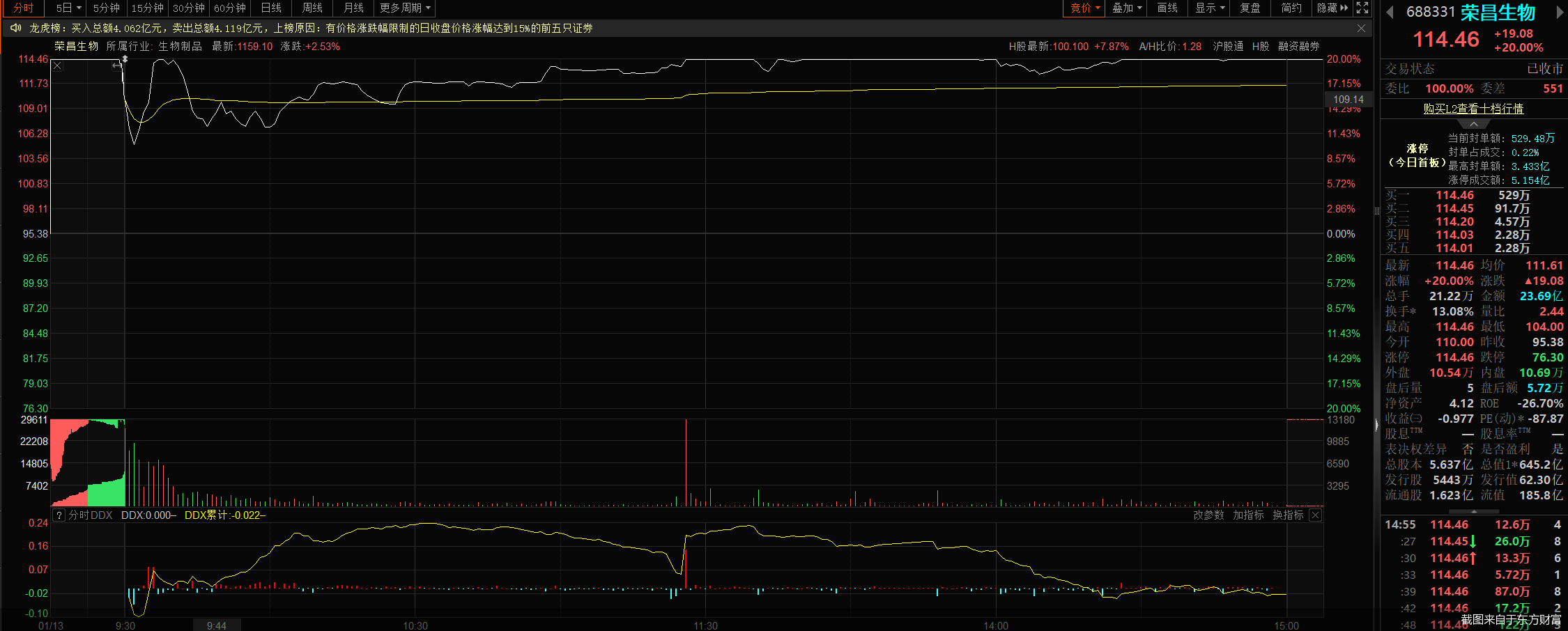 荣昌生物(688331)再度宣布一则重磅BD(商务拓展)交易。公告显示,荣昌生物与艾伯维集团控股公司(以下简称"艾伯维")就一款新型靶向PD- 1/VEGF的双特异性抗体药物RC148签署独家授权许可协议,首付款6.5亿美元,里程碑付款最高达49.5亿美元,合计约56亿美元。受这一消息影响,1月13 日,荣昌生物A股、H股双双大涨,其中A股更是涨停收盘,成交金额高达23.69亿元。 自2025年以来,中国生物医药掀起出海潮,仅荣昌生物在2025年就达成了两笔BD交易。尽管连续达成重磅BD交易,但荣昌生物面临的挑战依然不小,公司 尚未实现盈利。此外,近年来,荣昌生物的资金压力成为市场关注的焦点。截至2025年三季度末,公司货币资金为10.7亿元,资产负债率为61.18%。未来, 随着三笔BD交易首付款陆续落地,有望缓解公司短期资金压力。 大额BD刺激股价涨停 1月13日,荣昌生物A股高开高走,最终以"20CM"涨停收盘。 交易行情显示,1月13日,荣昌生物高开15.33%,开盘价为110元/股,开盘后,荣昌生物股价震荡走高,盘中多次触及涨停,最终收于涨停价114.46元/股, 收涨20%,总市值为645.2亿元 ...
