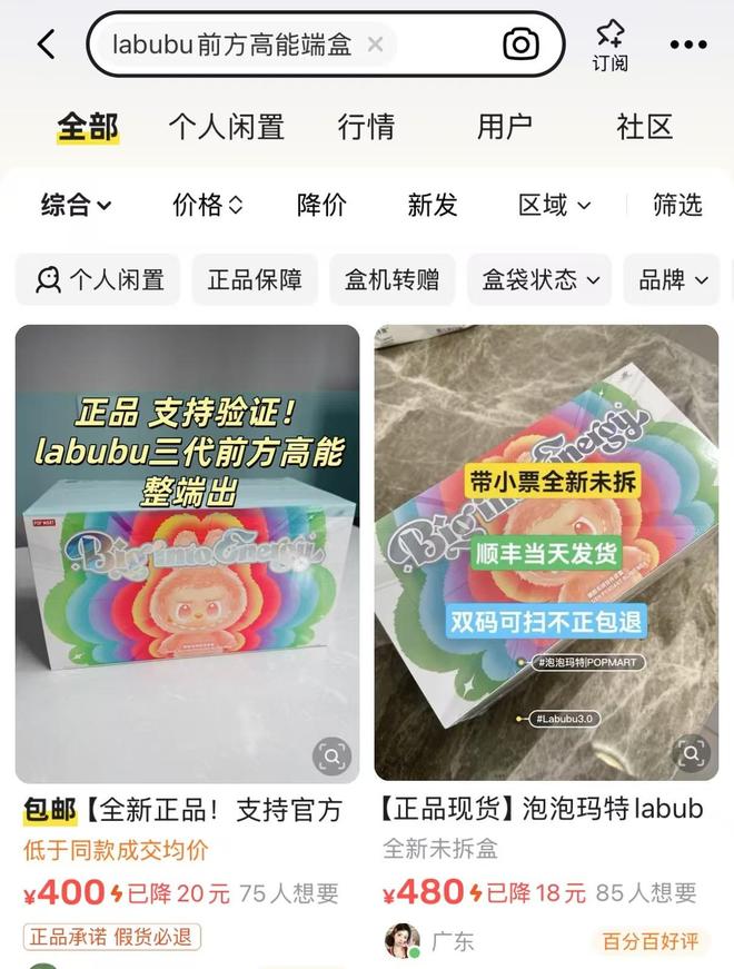 近期,泡泡玛特旗下热门IP LABUBU在二手交易市场的价格出现显著回调,部分系列商品转手价甚至 低于官方原价,引发市场关注。 1月7日,记者在闲鱼二手交易平台观察到,LABUBU 3.0"前方高能"系列整端6盒的转手价格已跌至400 元,较官方指导价明显缩水。此外,LABUBU部分款式近7日平均成交价格出现下滑态势。具体来看, LABUBU系列在2025年12月30日的近7日平均成交价为83.5元,而到2026年1月7日,这一价格已降至 78.5元。 业内分析人士指出,LABUBU二手价格的理性回归,根本驱动是市场增长逻辑的切换:商业模式正从 依赖"投资品"预期,回归到"消费品"本质。当二手市场炒作退潮,支撑高估值的故事也随之改变。 二手平台: LABUBU部分款式价格走低 超六成用户看跌后续走势 1月7日,记者在闲鱼二手交易平台观察到,LABUBU 3.0"前方高能"系列整端6盒的转手价格已跌至400 元,较官方指导价明显缩水。这一价格走势与数月前该系列盲盒预售"秒空"、二手市场溢价数倍的盛况 形成鲜明对比。 2025年4月,在泡泡玛特中国内地线上平台,LABUBU第三代搪胶毛绒产品一上线便迅速被抢光,秒 ...