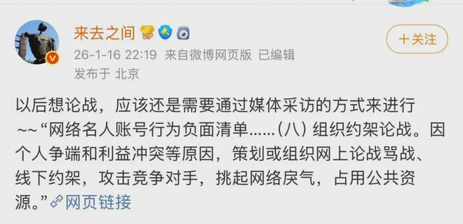 公司动态 - 微博官方于1月16日晚禁言了罗永浩与贾国龙的个人微博账号 原因是网络名人账号因个人争端和利益冲突策划或组织网上论战骂战 攻击竞争对手 占用公共资源 [1] - 贾国龙在当晚通过其公司认证账号“西贝人心声”发文澄清 自去年9月10日至今 其本人与公司所有员工未针对罗永浩报过一次警 其妻子张丽平报警的唯一一次原因是全家信息被“人肉” 包括其不到五岁的小孙女信息被泄露 [2] - 罗永浩与贾国龙之间的“预制菜之争”余波未平 罗永浩当日曾发长文称“这辈子没见过一个企业没犯别的错误 仅仅是因为被黑 就能倒闭的” 贾国龙随后公开表示 将在晚间就罗永浩对西贝的重大污蔑诽谤进行全面回应 [2] 行业观察 - 社交媒体平台对网络名人的公开论战与骂战行为采取管理措施 以遏制网络戾气 减少对公共资源的占用 [1]