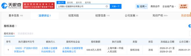 公司核心负面事件 - 公司运营主体“上海菌小宝健康科技有限公司”新增股权冻结,涉及冻结数额500万元人民币,冻结期限为2026年1月21日至2029年1月20日,执行法院为上海市第一中级人民法院 [1][2] - 公司电商渠道经销商“美惠生物科技(上海)有限公司”因虚假宣传被行政处罚,经销商在直播中宣称普通食品“太空30号”产品可“改善妇科炎症”、“10天见效”,被上海市崇明区市场监督管理局罚款3万元 [3][7][9] - 公司产品“B420益生菌”的实际含量曾遭原料供应商丹尼斯克(中国)有限公司质疑,根据原料销售数据估算,产品宣称含量所需原料应超过1666公斤,但丹尼斯克销售给其代工厂的B420原料总量不足100公斤 [10][12] 公司背景与应对措施 - 公司成立于2019年5月,是晨冠集团旗下品牌,法定代表人为涂醉桃,其同时也是母公司上海晨冠健康科技集团有限公司的法定代表人、实控人及执行董事 [2] - 针对经销商虚假宣传事件,公司已发布声明称责令涉事代理商整改并追责,涉事“太空30号”产品在天猫及抖音官方旗舰店已无法检索到,客服称“已暂时售罄” [7][8] - 公司与原料供应商丹尼斯克关于B420益生菌含量质疑的事宜,已于2025年5月通过友好协商达成和解 [12] 行业背景与市场乱象 - 中国益生菌市场增长迅速,已成为全球第二大消费市场,预计到2028年市场规模有望接近2000亿元 [9] - 行业乱象频发,夸大功效进行虚假宣传是普遍问题之一,2023年全国涉及益生菌功效夸大的投诉高达1500余起,同比增长20% [9]