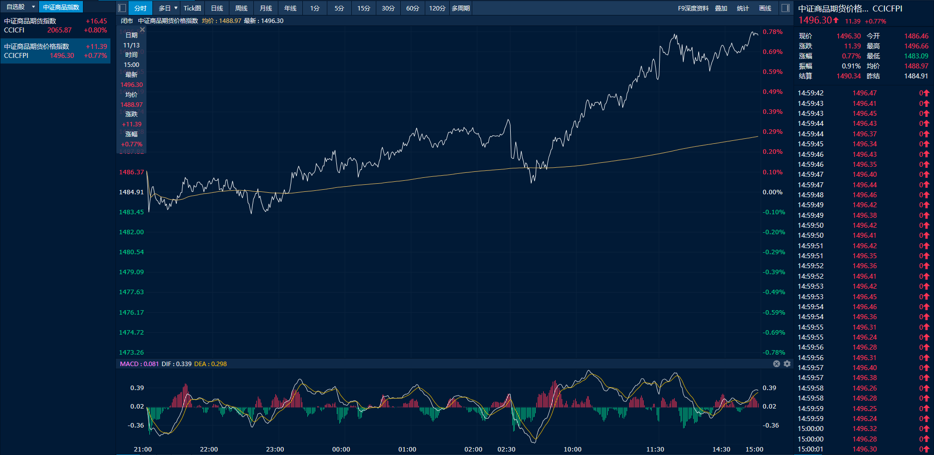 新华财经北京11月13日电(郭洲洋、左元)11月13日,白银大涨超5%,多晶硅、苹果涨超3%,苯乙烯、纯苯、沪锡涨超3%,纯碱、20号胶、菜油、黄金、 沪胶、碳酸锂、沪铝等涨超1%;低硫燃料油跌超4%,高硫燃料油、SC原油跌超3%,红枣跌超2%,鸡蛋、沥青跌超1%。 中证商品期货价格指数日内走势图(来源:新华财经专业终端) 红枣期货今日继续下挫2.6%,延续弱势,自10月下旬以来红枣主力合约累计跌幅已达2300元/吨,幅度约20%。南华期货分析称,新季红枣将迎来集中下树 阶段,当前新季产量仍为市场博弈的核心点,当前来看,南疆产区确有减产,但幅度尚难确定,受水分及单枣克重等因素影响,农户对产量的估计也易存在 偏差。短期在资金博弈下,红枣价格波动较大,但在减产之下,随着收购季的开启,预计下方空间或暂有限,关注后续新枣商品率及收购情况。 编辑:吴郑思 在消息面的影响下,昨日多晶硅主力合约盘中大幅回落,但光伏协会、晶澳科技陆续针对网络流传言论发布澄清公告,市场情绪转向,今日多晶硅主力合约 上涨3.69%。此外,据市场消息显示,今日数家硅片企业联合挺价,其中183N硅片上调至1.3元/片;210R硅片上调至1.3元/片 ...