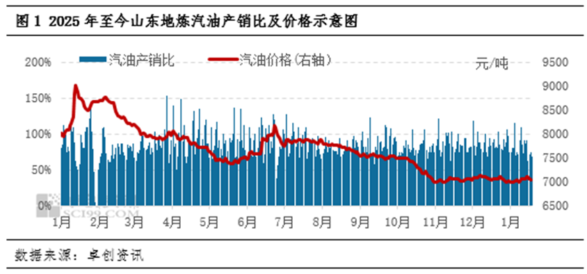 核心观点 - 上周山东成品油市场供需偏弱,汽柴油价格先涨后跌,周度均价小幅下滑 [1][2][5] - 未来一周,随着天气转好需求或短暂回暖,但供应充足,预计汽柴油市场价格或呈先跌后涨走势,周度均值水平可能仍小幅下滑 [7][8][9] 市场回顾:截至1月18日当周 汽油市场 - 供应端:当周汽油周度产量为51.17万吨,环比上涨1.15%,同比上涨8.62%,供应小幅增长 [2] - 需求端:受降雪天气影响,汽油车单产销比均值为78%,较前一周下跌4个百分点,未达平衡线 [2] - 价格表现:山东地炼92汽油均价为7039元/吨,较前一周同期下跌20元/吨,呈现先涨后跌走势 [2] 柴油市场 - 供应端:当周柴油周度产量为101.36万吨,环比上涨2.39%,同比上涨15.47%,供应小幅增加 [5] - 需求端:柴油需求一般,但受中东地缘局势影响,终端存在“买涨”情绪,成交出现短时好转,柴油车单产销比均值为84%,较前一周上涨2个百分点 [5] - 价格表现:山东地炼0柴油均价为5750元/吨,较前一周同期下跌18元/吨 [5] 未来展望 国际原油市场 - 预计原油价格或继续宽幅波动,地缘问题和宏观关税等多发将导致油价波动放大 [7] - 目前原油市场基本面偏弱形成拖累,整体上涨后面对阻力,更多体现为脉冲式上涨,趋势性上涨难度较大 [7] 成品油供应 - 未来一周暂无新炼厂计划检修或开工,多数炼厂保持平稳运行,且无棣鑫岳计划1月底开工 [8] - 预计山东地炼一次开工负荷或保持稳定,汽、柴油等产品供应保持充足态势 [8] 成品油需求 - 降雪天气过后,道路或逐步恢复通畅,居民出行和物流运输等恢复活跃,汽、柴油需求或有小幅好转 [8] - 终端阶段性补库或有增多,市场成交或有短时好转,但贸易投机需求或仍较低迷 [8] 价格走势预测 - 预计本周山东汽油、柴油市场价格或呈先跌后涨走势,均值水平或仍小幅下滑 [9]