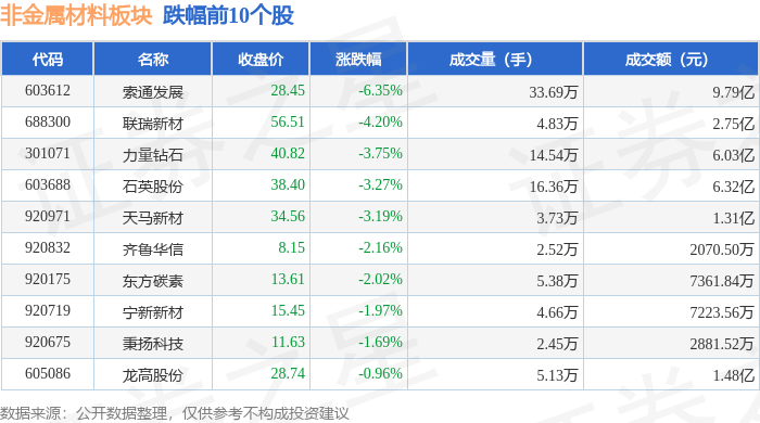 非金属材料板块11月14日跌3.49%,索通发展领跌,主力资金净流出2.84亿元