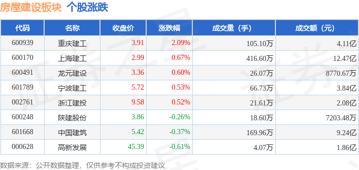 | 代码 | 名称 | 主力净流入 (元) | 主力净占比 游资净流入 (元) | | 游资净占比 散户净流入 (元) | | 散户净占比 | | --- | --- | --- | --- | --- | --- | --- | --- | | 600170 上海建工 | | 2704.81万 | 2.17% | -2301.89万 | -1.85% | -402.92万 | -0.32% | | 600939 重庆建工 | | 1344.38万 | 3.27% | -1203.09万 | -2.93% | -141.29万 | -0.34% | | 601789 宁波建工 | | 1342.43万 | 3.50% | -1778.18万 | -4.64% | 435.75万 | 1.14% | | 002761 浙江建投 | | 277.07万 | 1.33% | 1272.42万 | 6.12% | -1549.50万 | -7.46% | | 600491 | 龙元建设 | -325.21万 | -3.71% | 55.57万 | 0.63% | 269.64万 | 3.07% | | 600248 ...