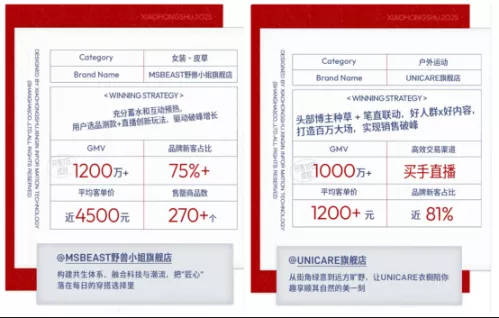 平台整体表现 - 全平台成交额突破1000万的商家数量同比增长140% [1] - 成交额突破100万的商品数量同比增长145% [1] - 双11期间电商下单人数同比增长77% [2] - 平台社区与双11相关话题讨论曝光度达到187亿,同比大涨530% [2] 买手经济与直播表现 - 买手贡献成交额同比增长73%,开播买手数量同比增长80% [1] - 买手群体促成商家成交额同比增783% [6] - 章小蕙直播间单场GMV达1.8亿,KK、Melody刘恭显、伊能静、吴昕等多位买手单场破千万 [6] - 商家店铺开播频次同比增长487% [3] - 直播间成为高效拉新场域,案例品牌新客占比达75%至81% [3] 用户消费行为与客群特征 - 成交额破千万商家的平均客单价达3000元,千万买手的客单价平均高达7700元 [2] - 消费习惯从日用刚需品囤货过渡到提升生活方式、悦己、兴趣等好货需求 [2] - 用户因认同买手生活方式与品味而产生信赖,买手成为用户生活方式的推荐官 [6] 商家增长与生态建设 - 超过三成月成交额10万以下的中小商家实现成交额同比增长超100% [8] - 平台通过上线「友好市集」、免除百万佣金、开放首页固定入口「市集」等措施支持商家增长 [1] - 外贸工厂及代工厂等拥有优质好货但缺乏零售经验的商家在平台实现从零破局 [8][9] - 基于兴趣、审美、情绪诞生的好货成为年轻人将热爱变成生意的载体,案例店铺三个月获超2000订单 [9] 典型案例分析 - 品牌「一心榴莲」主理人从分享笔记爆火到创业,凭借真诚提供好货一年内实现从零到千万成交额 [5] - 微来羊绒大衣主理人作为「厂三代」,依托家族工厂代工背景,在小红书新店首秀即创造成交超300万成绩 [9] - 买手「yuri就是点点妈」将选品从教育产品自然延伸至出行酒旅套餐,实现单场破千万 [6] - 明星买手吴昕通过美妆个护和时尚服饰两场专场直播,其中时尚专场GMV突破7500万 [6]