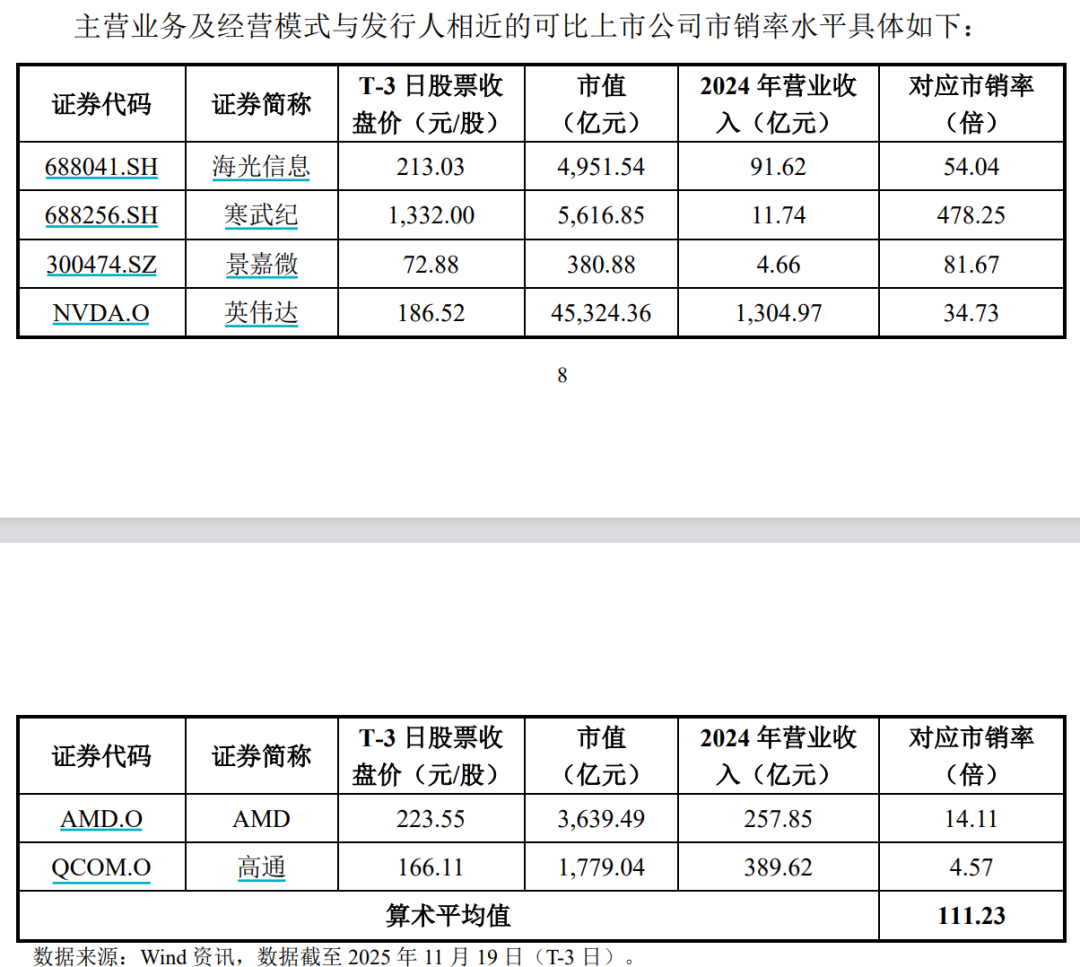 摩尔线程强调,本次发行价格114.28元/股对应的发行人2024年摊薄后静态市销率为122.51倍,高于同行业可比公司2024年静态市销率平均水平,存在未来 发行人股价下跌给投资者带来损失的风险。 【导读】摩尔线程IPO发行价确定为114.28元/股 11月20日晚,摩尔线程发布公告称,公司首次公开发行股票并在科创板上市的发行价格确定为114.28元/股,对应发行人上市时的市值约为537.15亿元。本 次发行市销率为122.51倍,预计募集资金总额约79.996亿元,扣除发行费用后,预计募集资金净额为75.761亿元。 截至《招股意向书》公告日,摩尔线程尚未盈利。如上市时仍未盈利,自上市之日起将纳入科创成长层。但需特别注意,在发行上市阶段,公司可能因业 务发展等因素在上市时实现盈利,进而不纳入科创板成长层,其适用的信息披露要求或其他监管安排也将相应调整。 摩尔线程2024年度营业收入为4.38亿元。2022年至2024年,发行人累计研发投入为38.1亿元,占最近三年累计营业收入的比例约为626.03%。满足招股意 向书中明确选择的市值与财务指标上市标准,即"预计市值不低于人民币15亿元,最近一年营业收入不低于 ...