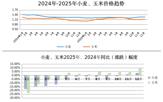 2025年滨州市居民生活消费品价格分析 - 2025年滨州市监测的60种重要居民生活消费品超市及集贸综合零售均价为12.19元/斤,较2024年下降2.63% [1] 原粮价格 - **小麦**:2025年全年均价为1.22元/斤,较2024年下降5.51%,价格全年低位稳定,四季度略有上涨 [1][2] - **小麦价格下降原因**:产量持续增加,2025年托市收购量大导致市场储备粮源充足;需求端消费疲软,粮食加工企业开机率不足;节前备货不及预期,原粮价格提振效果较弱 [2] - **玉米**:2025年全年均价为1.13元/斤,与2024年基本持平,价格走势呈“两头低,中间高”,四季度新粮上市后季节性回落但仍显著高于去年同期 [1][2] - **玉米价格上涨原因**:进口量锐减,贸易商及加工企业库存偏低导致供应偏紧;养殖业存栏高位,饲料企业采购持续增加;种植成本攀升,托底价格上涨 [2] 粮油副食价格 - **面粉与大米**:特一粉2.38元/斤、标准粉2.05元/斤、粳米2.99元/斤,价格较2024年基本平稳 [3] - **食用油**:鲁花花生油平均154.95元/5升、大豆油63.03元/5升,价格较2024年下降约6% [3] 肉类价格 - **猪肉**:2025年生猪收购均价7.03元/斤,较2024年下降16.96%;猪肉均价15.21元/斤,较2024年下降5.35%,价格从6月份开始同比转降 [6] - **仔猪价格走势**:上半年震荡波动,5月初涨至上半年最高位620元/头(6公斤),5月底国家协调去产能政策后,6-8月价格进入回落期,下半年仔猪(6公斤)市场交易价格降至380元/头,较上月同期下降20.83% [6] - **牛肉**:2025年鲜牛肉全年综合均价31.42元/斤,较2024年上涨22.16%,价格呈温和上涨趋势,主要受前期去产能及进口收紧政策支撑 [6] - **羊肉**:2025年鲜羊肉全年综合均价36.38元/斤,较2024年下降10.55%,价格趋势先抑后扬,下半年消费旺季及节日备货拉动价格上涨 [7] 禽蛋价格 - **鸡蛋**:2025年鸡蛋均价3.65元/斤,整体较2024年下降20.66%,下半年较去年同期降幅达29.71%,价格在4月后快速下跌,6月跌至全年最低 [9][10] 蔬菜价格 - **蔬菜**:2025年滨州市22种蔬菜全年综合均价3.31元/斤,较2024年下降6.88%,全年价格呈“V”型走势,10月中旬涨超去年同期水平 [10][12] - **蔬菜价格上涨原因**:2024年菜价低迷导致农户种植意愿下降,秋茬种植面积调减;主产区秋季持续降雨及10月强寒潮等恶劣天气导致作物根系受损、病害增多、亩产下降20%-40%,上市推迟约半个月至1个月,造成南北“茬口断档” [12] 水果价格 - **水果**:2025年滨州市监测5种水果总均价3.42元/斤,整体较2024年下降3.42% [13] - **具体品种**:香蕉、桔子、梨全年均价分别为3.08元/斤、3.42元/斤、3.42元/斤,较2024年分别下降4.39%、4.59%、4.59%;西瓜全年均价4.26元/斤,较2024年下降12.13%;苹果全年均价5.35元/斤,较2024年上涨0.95% [13]