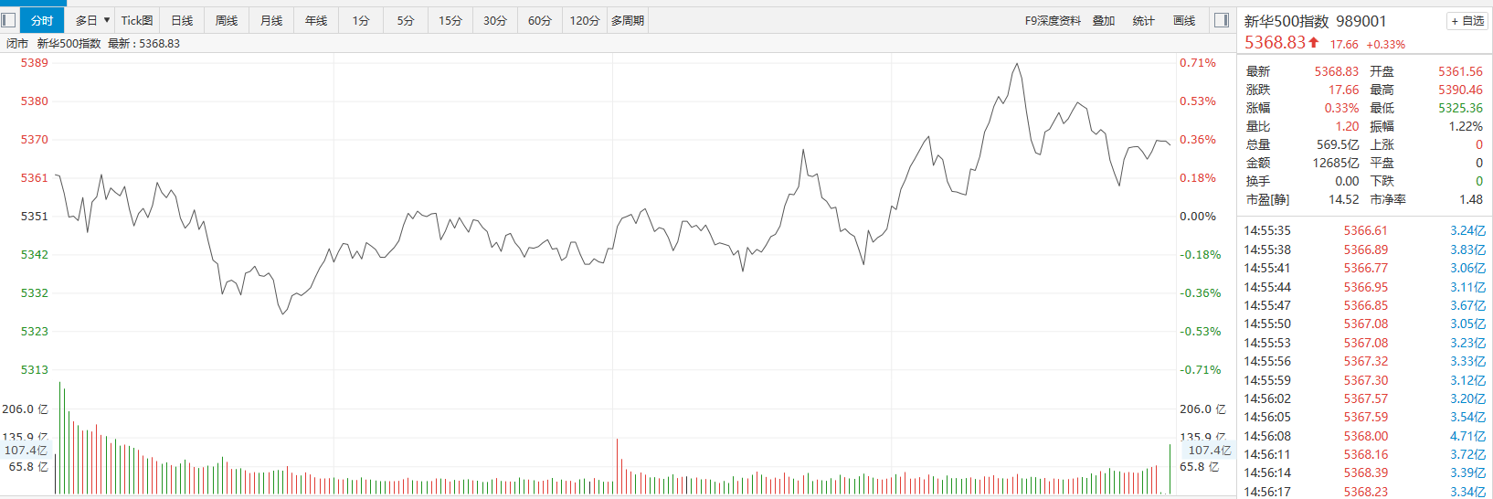 【新华500】新华500指数(989001)29日涨0.33%