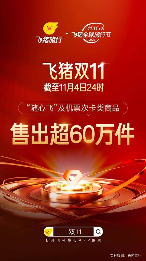飞猪双11机票次卡热销超60万件,跨境次卡占比近八成