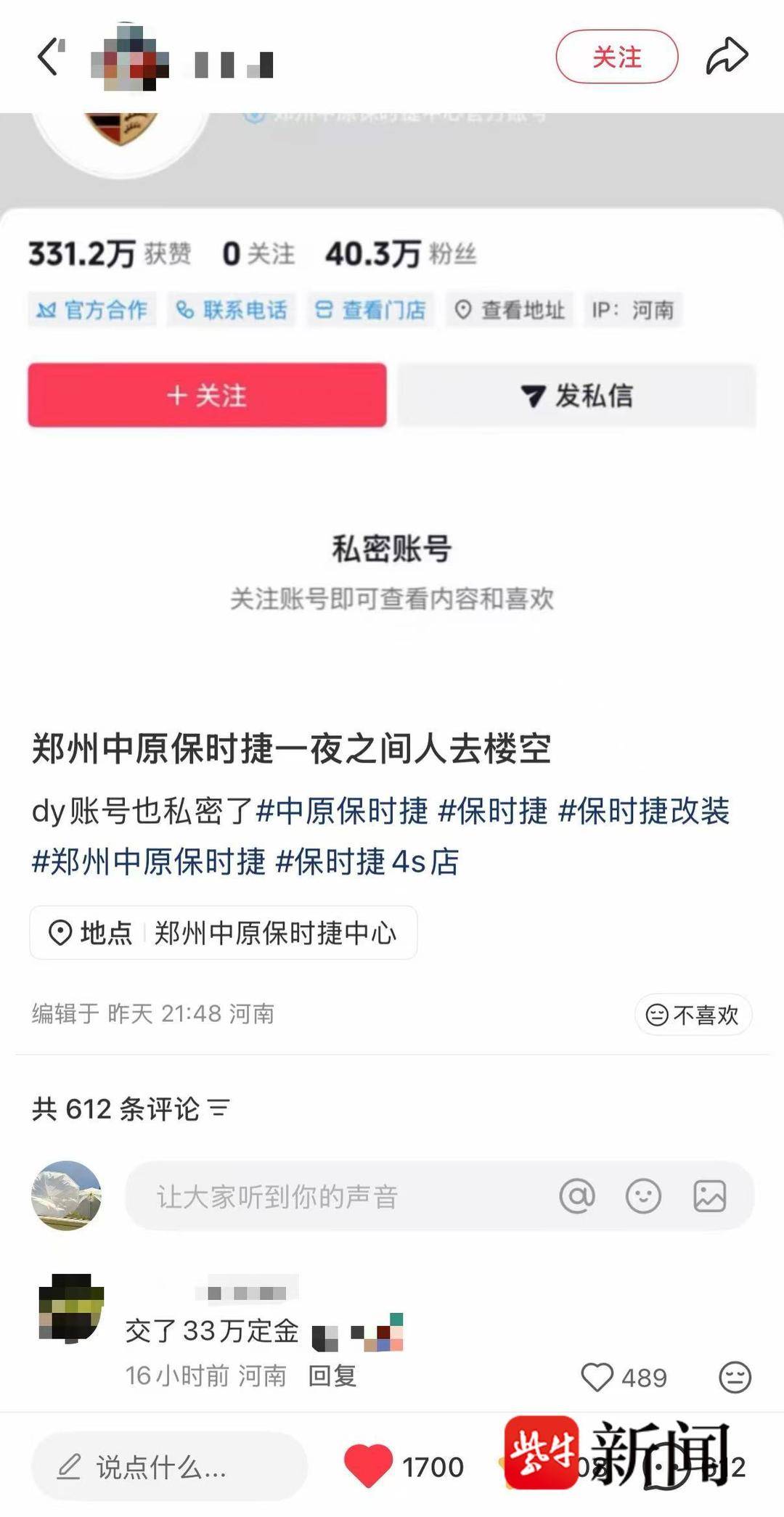 郑州中原保时捷中心疑似突然闭店“跑路”,当地商务局回应:有关部门已成立专班介入
