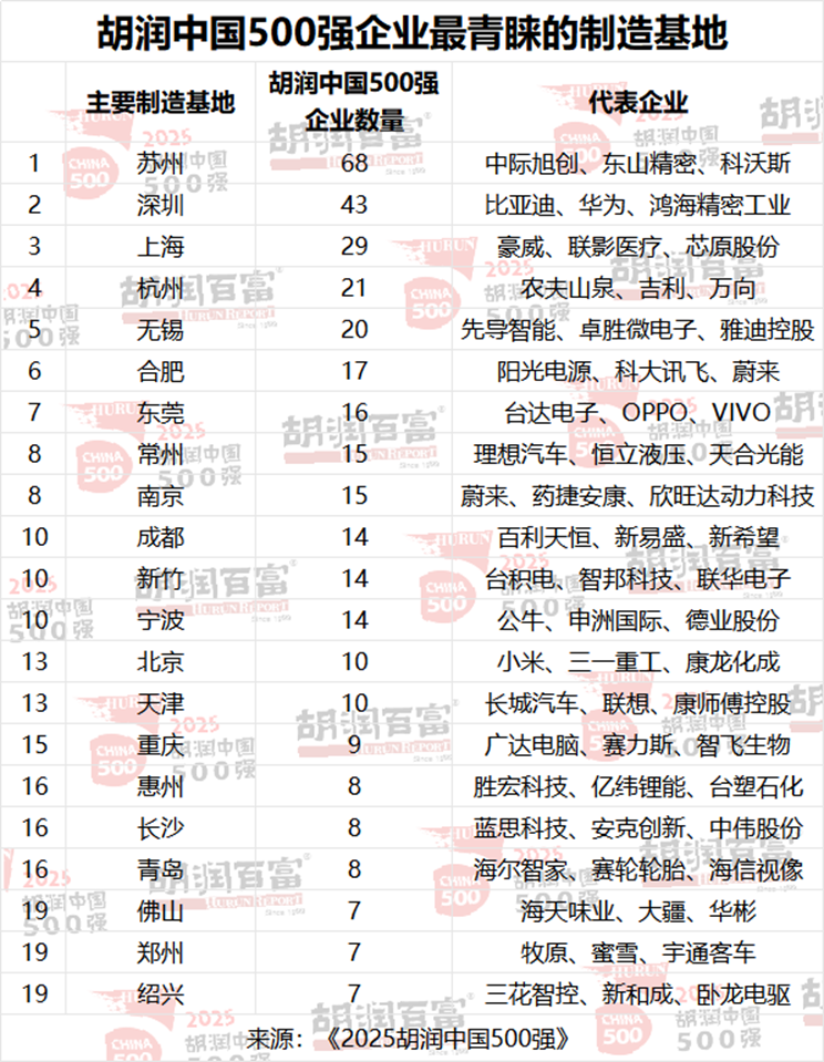 苏州成胡润500强企业最青睐制造基地,68家企业将主要制造基地选在此
