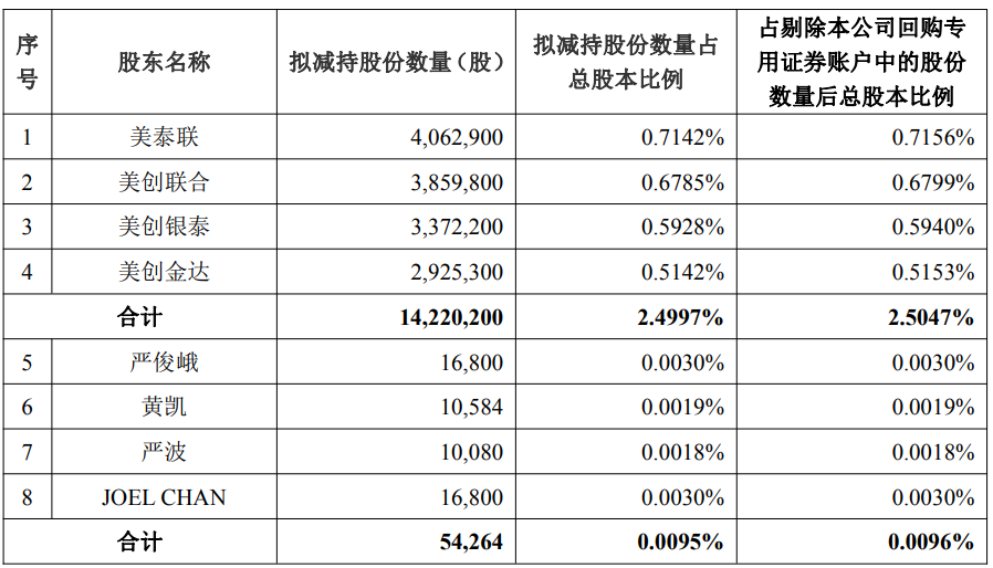 中国经济网北京1月20日讯 美好医疗(301363.SZ)昨日发布关于实际控制人一致行动人、董事及高管减持股份预披露公告。 持有公司股份43,400,000股(占公司总股本的比例为7.6291%)的股东深圳市美泰联实业有限公司(简称为"美泰联")、持 有公司股份41,230,000股(占公司总股本的比例为7.2477%)的股东深圳市美创联合投资合伙企业(有限合伙)(简称为"美创联 合")、持有公司股份36,022,000股(占公司总股本的比例为6.3322%)的股东深圳市美创银泰实业合伙企业(有限合伙)(简称 为"美创银泰"),以及持有公司股份31,248,000股(占公司总股本的比例为5.4930%)的股东深圳市美创金达投资合伙企业(有 限合伙)(简称为"美创金达"),计划自公告披露之日起15个交易日后的3个月内以集中竞价和大宗交易方式合计减持公司股份 不超过14,220,200股(占公司总股本比例为2.4997%)。 美好医疗首次公开发行募集资金总额为135,731.82万元,募集资金净额为122,478.91万元。公司最终募集资金净额比原计划 多22478.91万元。2022年9月30日,美好医疗发布的 ...