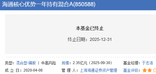 海通核心优势一年持有期清盘 成立5年半亏损约25%