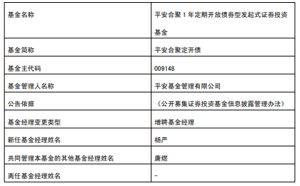 平安基金旗下4只基金增聘杨严