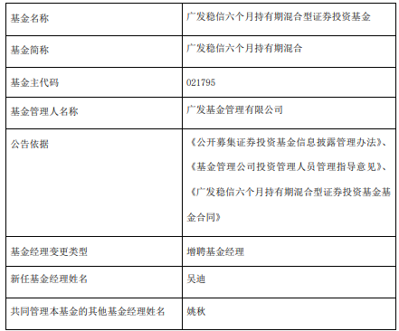 广发稳信六个月持有期混合广发集汇债券增聘吴迪