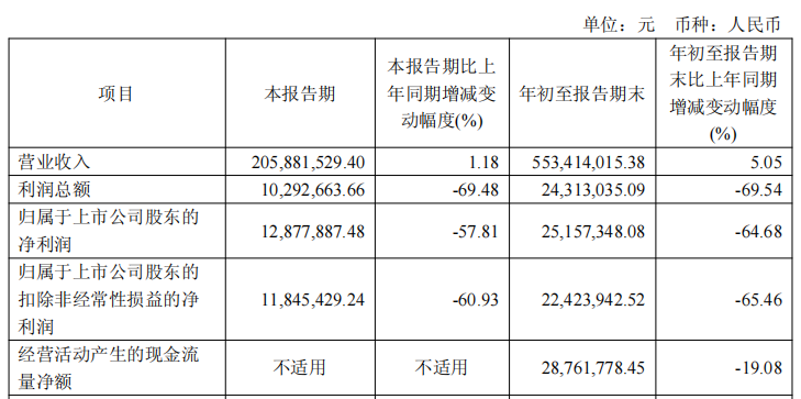 上市当日,凯淳股份盘中最高报68.80元,为上市以来股价最高点,上市当日收报60.67元,涨幅137.55%。 凯淳股份募集资金总额为5.11亿元,扣除发行费用后,募集资金净额为4.46亿元。凯淳股份最终募集资金 净额比原计划少5406.86万元。凯淳股份2020年7月6日披露的招股说明书显示,公司拟募集资金5.00亿元,其中 2.47亿元拟用于品牌综合服务一体化建设项目,1.03亿元拟用于智能数字化技术支持平台建设项目,1.50亿元拟 用于流动资金项目。 凯淳股份上市发行费用为6477.25万元,其中保荐机构东方证券承销保荐有限公司获得承销及保荐费用 4597.20万元。 (责任编辑:何潇) 中国经济网北京11月25日讯 凯淳股份(301001.SZ)日前发布2025年三季度报告。2025年前三季度,该公 司实现营业收入2.29亿元,同比下降22.81%;实现归属于上市公司股东的净利润36.69万元,同比下降92.15%; 实现归属于上市公司股东的扣除非经常性损益的净利润-333.77万元,同比下降239.40%;经营活动产生的现金 流量净额为1930.91万元,同比下降69.05%。 | | 本报告期 | ...
