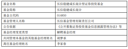 李家春离任长信稳健成长混合基金 成立3年半没咋赚钱