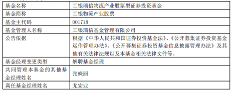 尤宏业离任工银物流产业股票