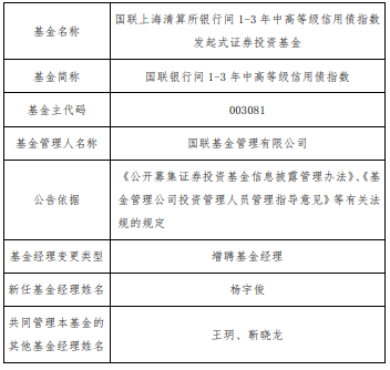 国联银行间1-3年中高等级信用债指数增聘杨宇俊