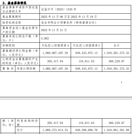 天弘匠心回报债券成立 规模19亿元