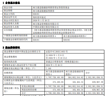 基金经理为陶铄、刘盈杏。陶铄曾任职于招商银行总行、普华永道会计师事务所、穆迪投资者服务 有限公司、中国国际金融有限公司;2010年9月至2014年9月任职于大成基金管理有限公司,历任研究 员、基金经理助理、基金经理。2014年9月加入南方基金产品开发部,从事产品研发工作,2014年12月 至2015年12月任固定收益部资深研究员,现任固定收益研究部总经理、基金经理。 刘盈杏2017年7月加入南方基金,任固定收益研究部转债研究员、信用研究员;2021年10月13日至 2023年9月15日任基金经理助理;2023年9月15日至今任基金经理。 中国经济网北京1月27日讯 今日,南方基金发布南方惠益稳健添利债券型证券投资基金基金合同生 效公告。 募集期间净认购金额2,352,581,036.51元,认购资金在募集期间产生的利息639,867.39元,募集份额 合计2,353,220,903.90份。 | 基金募集申请获中国证监会注册的文号 | | 证监许可[2025]1653 号 | | | | --- | --- | --- | --- | --- | | 基金募集期间 | | 自2026年1月9日 至2026年1 ...