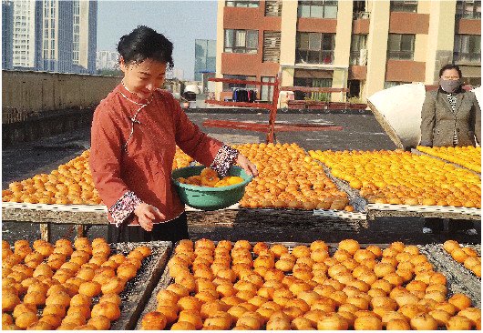 近日,在菏泽耿庄的农家院落里,一串串旋去皮的金黄柿子整齐地晾晒在棚箔上,在阳光下泛着琥珀般的光 泽,这是一年一度制作耿饼的黄金时节。 耿饼和牡丹、木瓜并称为曹州三大特产。天上繁霜降,人间秋色深,"霜降"前后正是制作耿饼的好时节。 色泽诱人的耿饼不仅是一种食物,更是一份穿越古今的乡愁记忆,一种融入手艺生活的文化传承。 记者 李潇 菏泽报道 甜蜜忙碌如约开启 深秋的菏泽,天朗气清,阳光带着恰到好处的暖度,洒遍鲁西新区丹阳街道耿庄社区的每一个角落。记者走 进耿佰起与张玉芬夫妇的农家院落,一股清甜的柿香便扑面而来,缠绕鼻尖,久久不散——这是属于曹州耿 饼的专属气息,也是耿庄人每年金秋最熟悉的味道。在这里,每到金秋时节,一场浸着柿香的甜蜜忙碌便如 约开启。 张玉芬时不时会拿起一颗晾晒中的柿子,用手轻轻按压,感受其软硬程度,"晒到这个手感就差不多了,接下 来要上堆、过风,让它慢慢长霜。"她指着角落里一堆用纱布遮盖的柿子介绍说,那里的柿子已经完成了初 步晾晒,正处于发酵长霜的关键阶段。每天清晨和傍晚,她都要仔细拨开果实,通风排湿,确保长霜均匀。再 过些时日,这些经过时光酝酿的柿子,便会披上一层洁白细腻的"豆瓣霜",蜕变成驰 ...