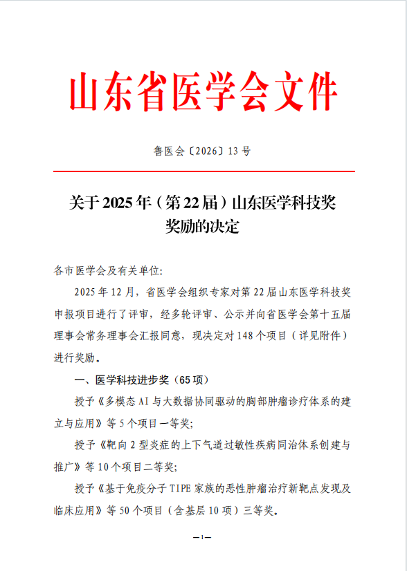 喜报!济南市三院脊柱外科医师获2025山东医学科技进步三等奖