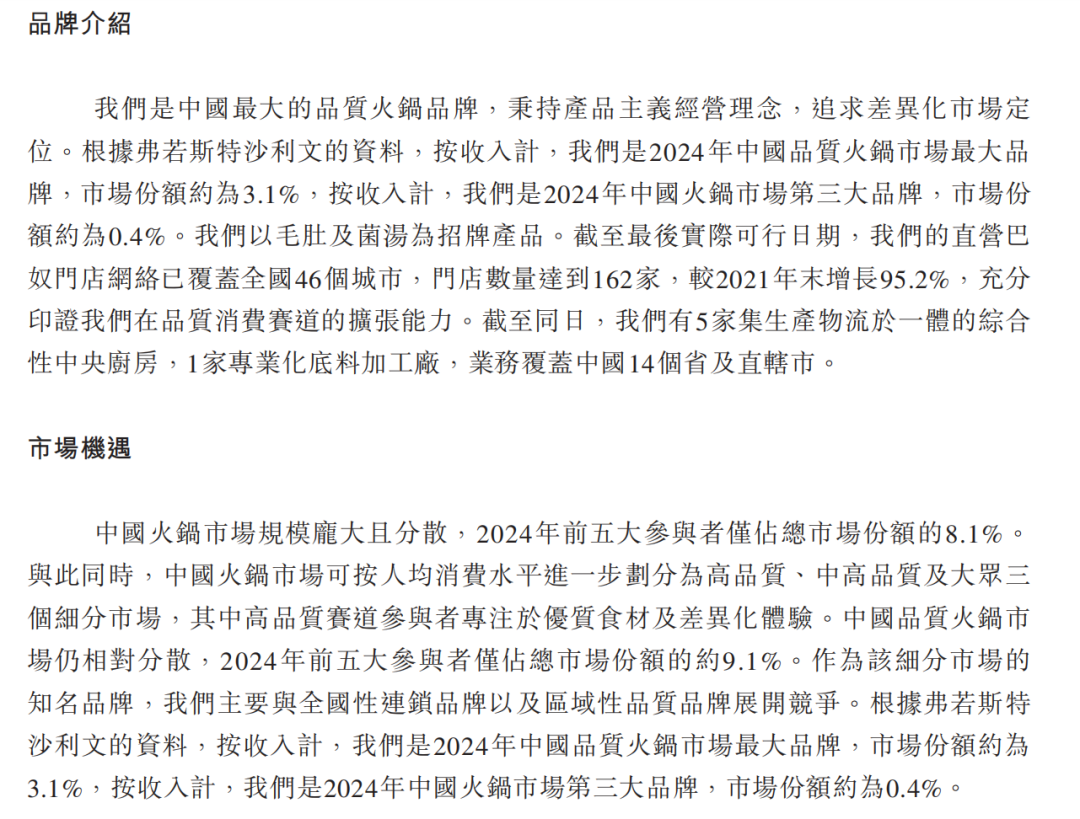 12月17日,巴奴国际控股有限公司(以下简称"巴奴火锅"或"公司")更新招股书,中金公司(601995)、中银国际为联席保荐人。根据招股书,巴奴火锅 成立于2001年4月,总部位于河南省郑州市,创始人为杜中兵。 弗若斯特沙利文数据显示,按收入计,巴奴火锅在2024年中国火锅市场中的排名位于海底捞、呷哺呷哺之后,位列第三,市场份额约为0.4%;在中国高 端火锅市场则排名第一,市场份额约为3.1%。 首次递表后,因股权架构、分红合理性、社保欠缴等问题,巴奴国际控股有限公司被中国证监会"九连问"。公司于12月17日向港交所二次递表,并作出针 对性解释。若顺利上市,巴奴火锅将成为港股"中式火锅第三股"。 图片来源:巴奴火锅本次递交的招股书 公司在招股书中提到,二人通过D&H(BVI)LTD(持股75.26%)、BANUUNITEDLTD(持股8.11%)合计控制83.38%投票权,同时番茄资本旗下 TomatoSecond、Fifth、Sixth等合计持股7.95%;Tomato系列私募基金是2020年~2022年巴奴引入的财务投资,杜中兵夫妇未直接持有Tomato系列股权,而 是通过员工持股平台(如BANUUNIT ...
