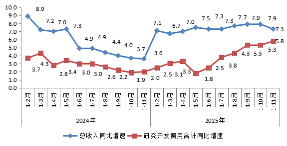 转自:北京日报客户端 2025年1-11月,中关村示范区监测的规模(限额)以上重点企业(以下简称中关村企业)实现总收入 89558.9亿元,同比增长7.3%。实现技术收入25402.4亿元,同比增长13.1%,技术收入占总收入比重为 28.4%。 1-11月,中关村示范区规模(限额)以上国家高新技术重点企业(以下简称中关村国高新企业)实现总 收入35993.3亿元,同比增长8.3%。其中,电子信息领域实现总收入17517.3亿元,同比增长15.7%,占 中关村国高新企业总收入的48.7%,拉动中关村国高新企业总收入增长7.2个百分点。 二、采集渠道 本报表由注册在中关村国家自主创新示范区内的规模(限额)以上重点企业法人单位通过北京统计联网 直报系统报送。 三、主要统计指标解释 1-11月,中关村企业研究开发人员合计64.5万人,同比下降0.7%;中关村企业研究开发费用合计4059.3 亿元,同比增长5.8%。 中关村示范区规模(限额)以上重点企业总收入、研究开发费用合计同比增速 单位:% 附注 一、统计范围 注册在中关村国家自主创新示范区内的规模(限额)以上重点企业法人单位。 来源:北京统计局 总收入:指企业 ...