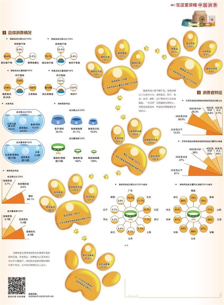 行业规模与增长 - 中国城镇犬猫宠物数量超过1.2亿只,宠物市场规模快速扩大 [3] - 宠物服务成交量同比增速达3.9倍 [3] - 猫狗日用品、主粮、零食、玩具等品类成交量同比增速均超过1倍 [3] 消费结构与趋势 - 猫食品与狗食品为前两大品类,总成交额占比超过65% [3] - 宠物消费呈现从满足“吃饱”到追求“吃好”的趋势,烘干宠物粮、肉条/肉块等品质宠物粮快速增长 [3] - 宠物清洁用品、猫狗柜/爬梯的成交量实现大幅提升 [3] 地域市场特征 - 宠物用品成交额居前的多为东部省份,消费水平与经济社会发展水平高度相关 [4] - 海南、山西、江西、安徽等省份显示出较强的宠物经济发展潜力 [4] 行业发展驱动因素 - 宠物角色转变为“家庭成员”,重塑人与动物关系,催生市场机遇 [3] - 宠物主人为宠物投入时间和金钱的意愿越来越高 [3] - 宠物主人更加注重宠物健康和生活品质 [3]