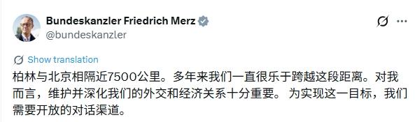 德国总理用中文发帖:维护并深化德中外交和经济关系十分重要
