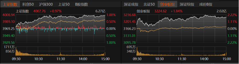 市场整体表现 - A股市场全线走强,沪指收涨0.97%至4007.76点,创业板指收涨1.84%至3224.62点,深证成指涨近2% [4] - 市场成交额显著放量,日成交额增至2.08万亿元,较前日的1.89万亿元明显增加 [4] - 市场呈现分化格局,当日共计2880只个股收涨,72只个股涨停,同时有2388只个股收跌 [1][8] 领涨板块与行业 - 科技板块成为市场主线,光通信模块指数涨3.52%,AI芯片指数涨5.85%,Chiplet概念指数涨6.34% [4][5] - 有色金属板块表现强劲,板块指数上涨3.05%,中国铝业、闽发铝业等多只个股涨停 [5][6] - 电子行业指数上涨3.00%,长光华芯“20cm”涨停,源杰科技、东田微等个股涨幅均超10% [7] - 电力设备板块指数上涨1.67%,华盛锂电“20cm”涨停,多只相关个股涨停 [8] 个股成交活跃度 - 成交额超过100亿元的个股共计8只,阳光电源成交217亿元,特变电工成交215亿元,寒武纪-U成交193亿元 [9] - 杠杆资金热情不减,截至11月5日,沪深京两融余额达2.49亿元 [4] 机构观点与投资主线 - 受访人士认为,市场前日的回踩清洗了浮筹,为强势反弹奠定了基础,但后续走势需关注成交量能否持续放大 [3][9] - 科技成长领域被普遍视为市场主线,AI、国产替代、半导体、新能源等方向受到重点关注 [11][14] - 建议投资者关注AI算力产业链、电网设备需求、储能风电、铜铝等有色资源股以及AI芯片的国产替代进程 [11][14] - 在配置策略上,建议均衡配置科技成长与稳健资产,避免盲目追涨杀跌,并可考虑逢回调分批次买入基本面稳健的头部企业 [12][14]