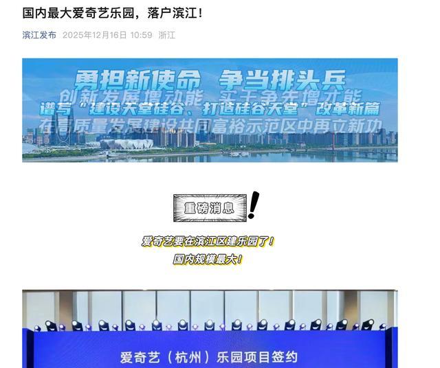爱奇艺线下乐园项目落户杭州 计划于2027年开放
