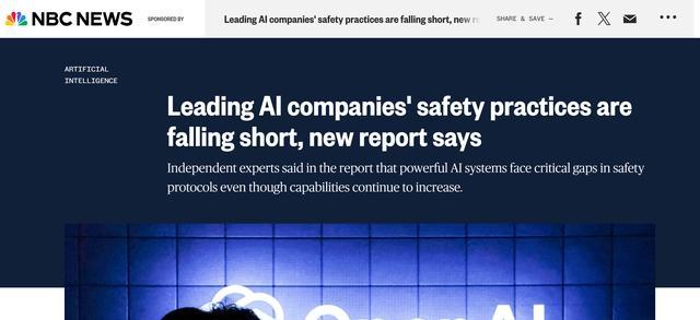 安全评估 “亮红灯” 多家顶尖 AI 公司安全体系未达全球要求