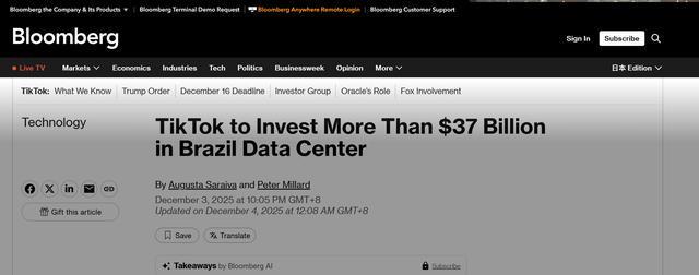 TikTok 斥 377 亿美元加码巴西,打造拉美首个大型数据中心