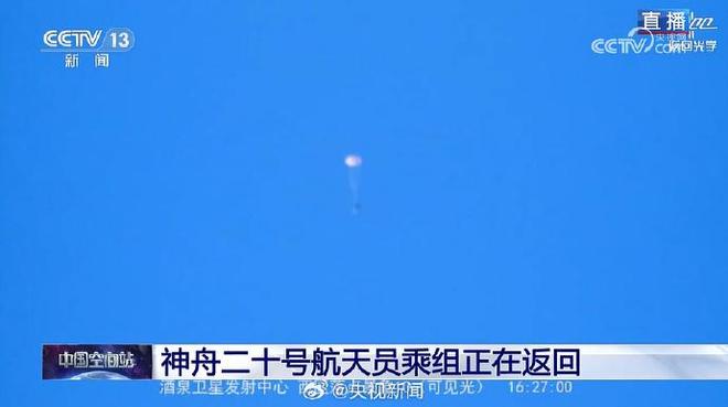 任务执行情况 - 神舟二十号航天员乘组于今日返回地球 [1][3][4] - 航天员陈冬、陈中瑞、王杰乘坐神舟二十一号飞船返回 [1][4] - 返回地点为东风着陆场 [1][4] - 返回舱主降落伞已打开 [1][4] - 返回舱第三次落点预报已发出 [3]