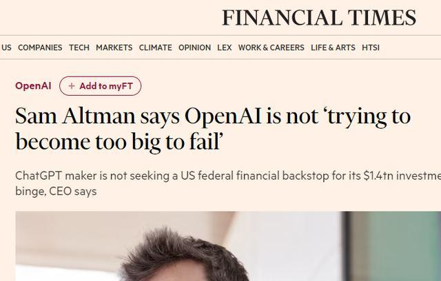 OpenAI拒当“大到不能倒”企业!奥特曼公开反转CFO言论