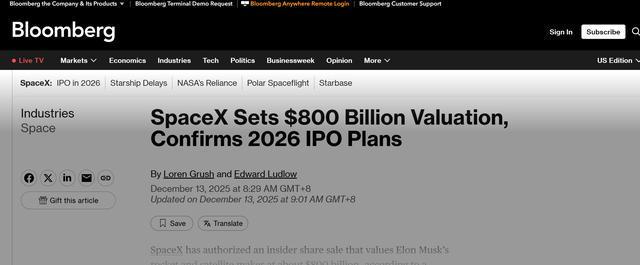 SpaceX 敲定内部股票交易,估值达 8000 亿美元