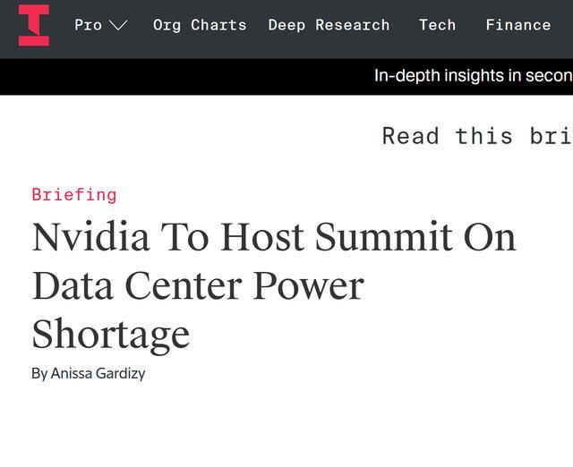 英伟达或将召开闭门峰会,聚焦 AI 数据中心供电瓶颈问题