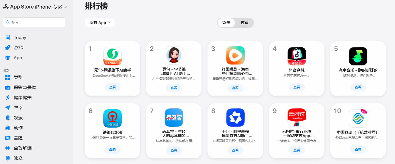 元宝登顶App Store免费榜,大厂争抢AI超级入口