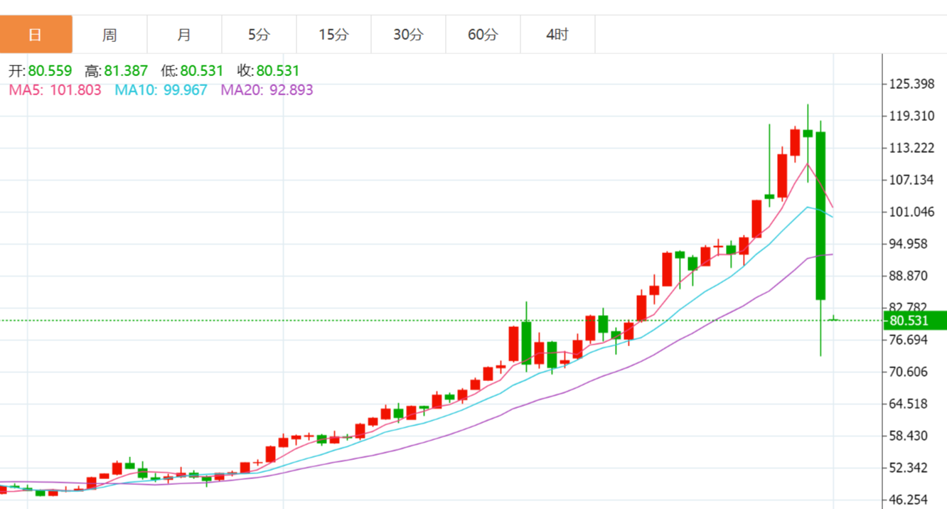 现货白银周一盘初跌4.5%,最低报80.53美元/盎司;现货黄金跌1.4%,最低报4772.39美元/盎司。 金价急跌之下:银行密集提示风险,部分实物金全线售罄 此前,1月31日,黄金上演史诗级崩盘,盘中最大跌幅突破12%,最终收跌9.25%。白银更惨烈,单日最大跌幅达到36%,最终收跌26.4%,超过四分之一的 市值瞬间蒸发。 相关阅读: 风暴眼丨史诗级崩盘!有人爆仓有人想退货,黄金还香吗? 历史性崩盘后,CME再上调金银交易保证金 白银走势 黄金走势 金银价暴涨后又暴跌:清醒的头脑比黄金更贵,警惕金市银市那些暴富故事 ...