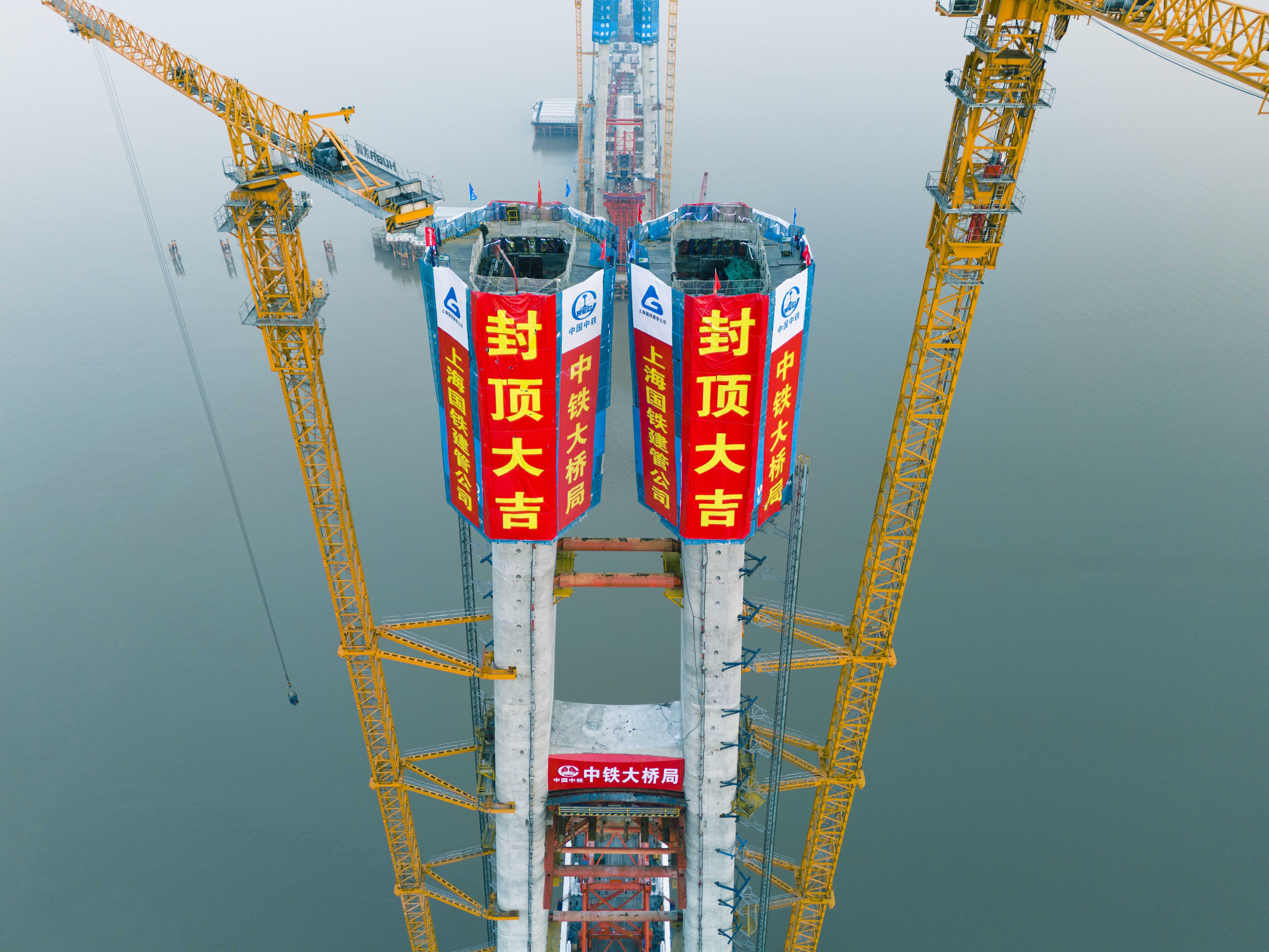 中铁大桥局承建世界最长跨海铁路大桥首座主塔封顶