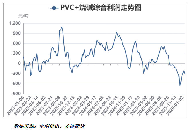 从年内淡旺季来看,PVC淡季通常集中在1—3月(冬季和春节)和10—12月(北方停工),旺季则出现 在3—5月(春季建筑高峰)和9—11月(秋季需求增长)。目前已经临近春节,北方PVC企业受天气影 响多数停产,而南方终端企业受春节假期影响也陆续放假,PVC需求端接近停滞。 2025年,PVC在产能扩张压力下一路向下,尤其是下半年加速下滑,一度跌破4500/元/吨大关,不仅跌 破疫情期间的最低点,而且创出上市以来最低点。不过,随着连续大跌后亏损加剧,成本端支撑逐渐体 现,PVC逐渐摆脱底部区间,但是在需求及出口退税取消的压制下,PVC反弹有限,上方阻力依然存 在。 PVC估值修复 近几年,PVC价格持续下跌,屡创新低,PVC利润也持续压缩,其中外采电石法已经持续亏损近三年, 亏损一度超过1500元/吨。不过,PVC生产企业多为氯碱一体化企业,多数时间烧碱利润能够覆盖PVC 亏损,PVC并未因为亏损而降负荷,成本支撑作用未能体现。 2025年下半年烧碱价格也持续下跌,烧碱利润压缩明显,PVC+烧碱综合利润也出现亏损,最多超过 600元/吨。在巨大的亏损背景下,氯碱企业开始降负荷,PVC供应压力缓解,随着价格反弹, ...